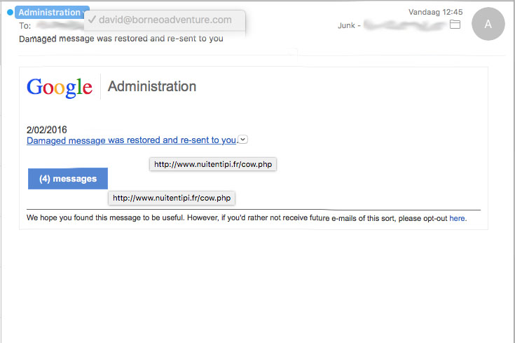 DamagedMessage-fakemail Published 02-02-2016 at 735 × 489 in BEWARE ! : “Damaged message was restored” phishing scam eMail