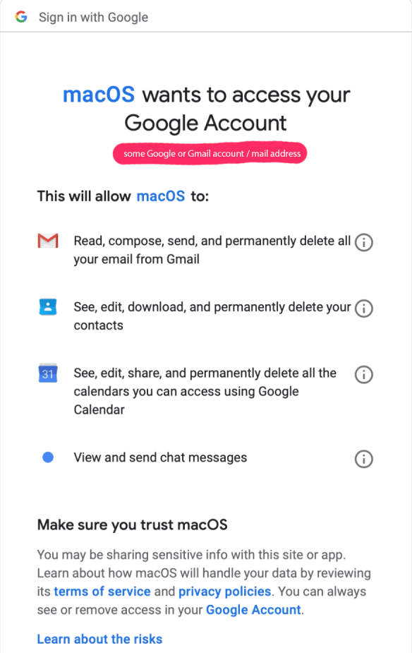 • now, just allow macOS to access your Google account (exactly as you are asked to do)